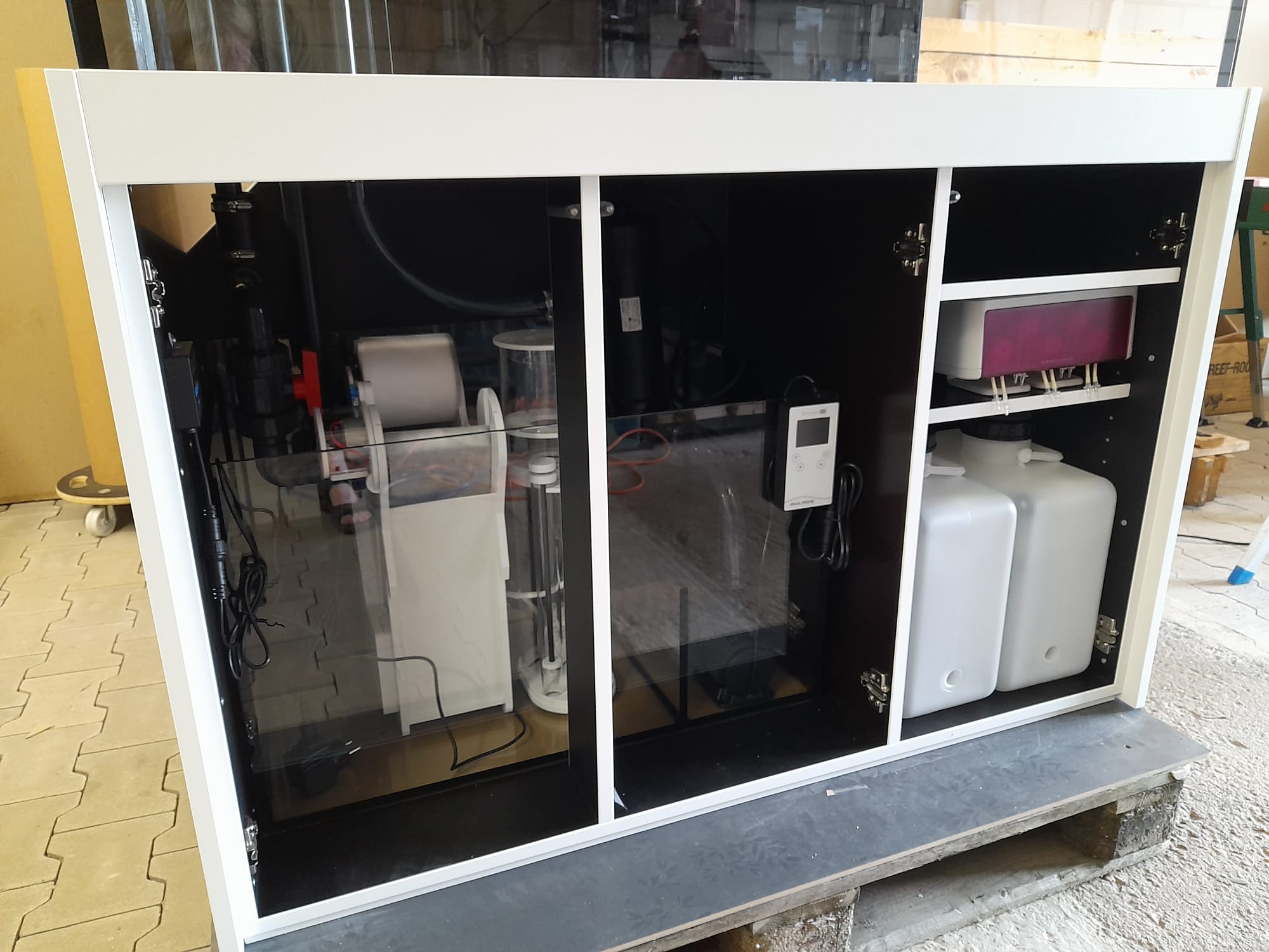 Für anspruchsvolle Meerwasser Aquarianer verbauen wir auf Wunsch die Premium Marine Boxen der Fa. Deltec. Ink. Skimmer, Vliesfilter, Förderpumpe und Nachfülltank.