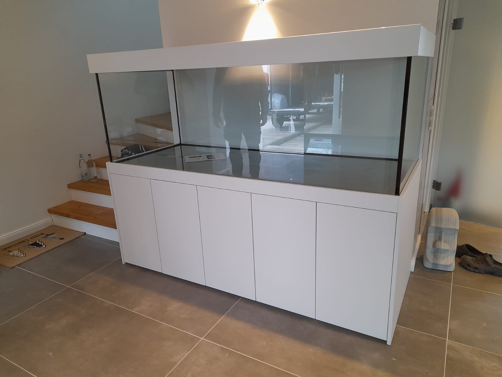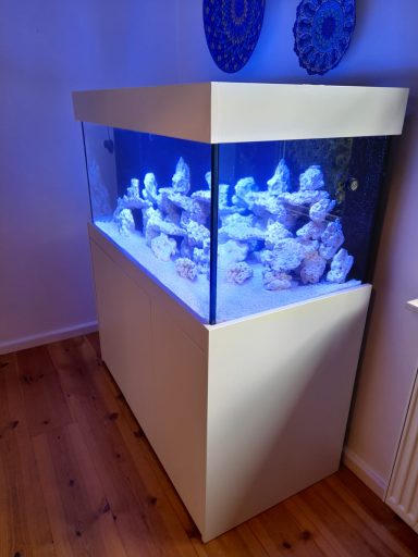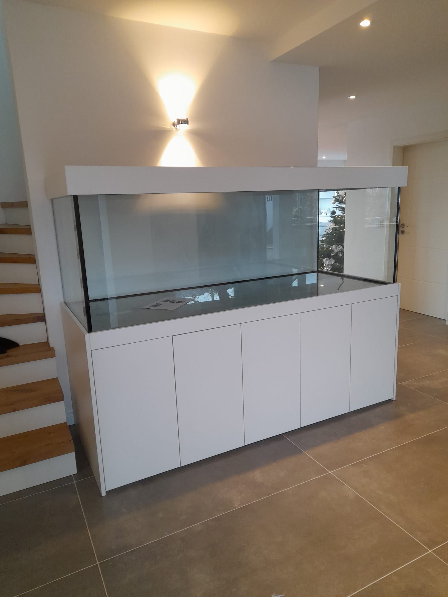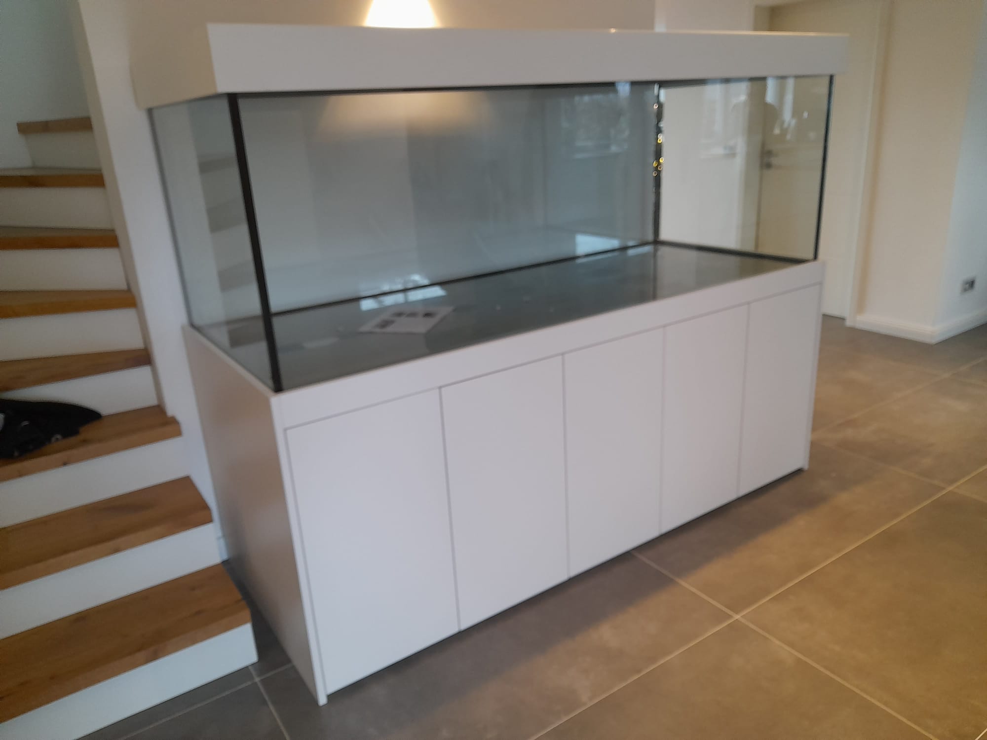 Durch unseren eigenen Lieferservice wurde diese schöne 200cm Aquarium Anlage der Serie Modern im Dekor weißmatt ausgeliefert.